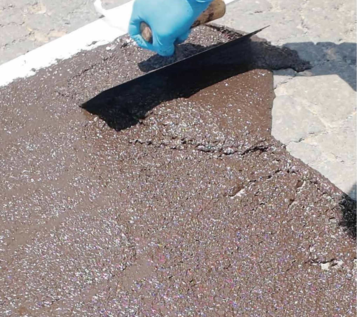 高聚物瀝青砂漿是針對(duì)道路網(wǎng)裂修復(fù)精心研發(fā)的高性能材料,融合高聚物材料的高強(qiáng)度粘結(jié)特性、改性瀝青的柔性抗裂優(yōu)勢(shì)及特殊功能性填料的協(xié)同效應(yīng),突破傳統(tǒng)修復(fù)材料局限,構(gòu)建起 “剛?cè)岵?jì)、持久穩(wěn)固” 的新型修復(fù)體系。產(chǎn)品經(jīng)嚴(yán)格的實(shí)驗(yàn)室模擬與實(shí)際工程驗(yàn)證,在極端溫度、重載交通等復(fù)雜環(huán)境下,展現(xiàn)出優(yōu)良的路用性能,是現(xiàn)代瀝青路面養(yǎng)護(hù)領(lǐng)域的革新性解決方案。