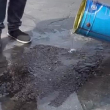 4、噴水激活:向攤鋪好的冷補料表面均勻噴酒適量清水。